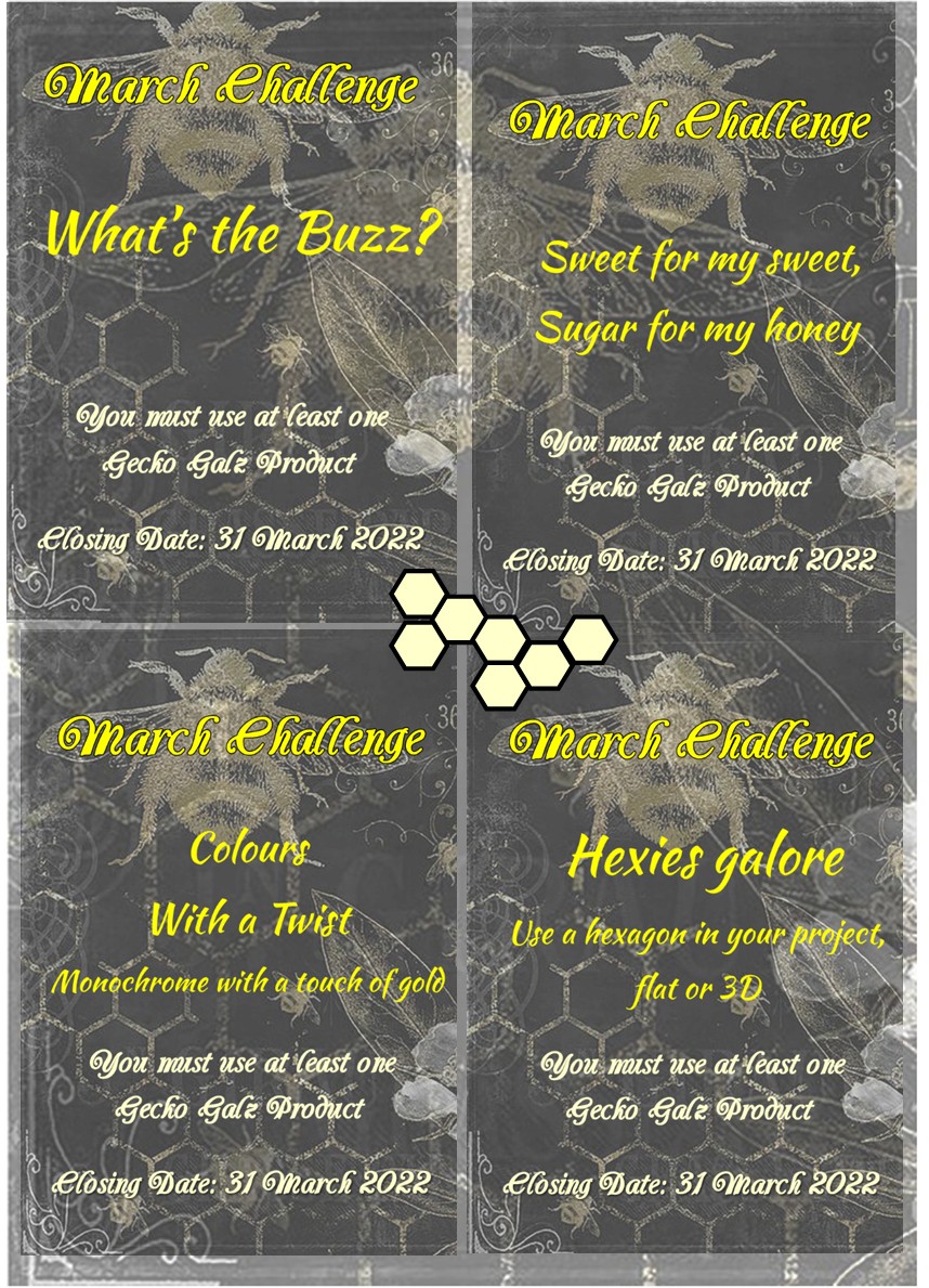 For those of you who aren't familiar with the many Challenges Gecko Galz has available each month, here is a list with the links. Of course to be eligible you do have to use at least one GG product. Gecko Galz also has a newsletter each month which has a lot of information in it, as well as the current specials and discount for the month. There are also free products if you spend as little as US$2 or over US10 after discounts.